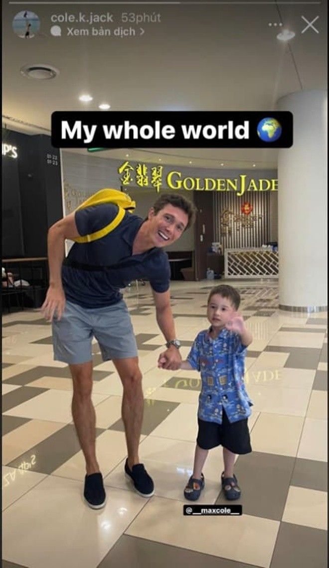 Trên Instagram cá nhân, chồng cũ Hoàng Oanh đăng tải khoảnh khắc đi chơi với con trai. Có thể thấy bé Max rất vui khi được gặp ba. Nam doanh nhân còn thể hiện tình cảm với quý tử bằng dòng chữ: "My whole world" (tạm dịch: "Cả thế giới của tôi").