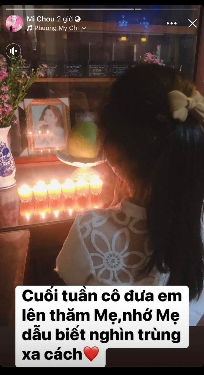 Mới đây, trên trang cá nhân, bảo mẫu của con gái cố nghệ sĩ Mai Phương đã chia sẻ hình ảnh đưa nhóc tỳ đi thăm mẹ nhân ngày cuối tuần được nghỉ. Kèm theo khoảnh khắc này, cô chia sẻ xúc động: "Cuối tuần cô đưa em lên thăm mẹ, nhớ mẹ dẫu biết nghìn trùng xa cách".