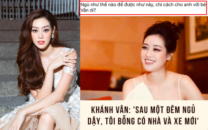 Mới đây, mạng xã hội lan truyền phát ngôn "Sau một đêm ngủ dậy, tôi bỗng có nhà, có xe" của Hoa hậu Hoàn vũ Việt Nam 2019 Khánh Vân. Ngay lập tức nhiều ý kiến trái chiều từ dư luận, khiến nàng Hậu buộc phải lên tiếng. Theo đó, nàng Hậu nói đây là vấn đề cô gặp phải hồi năm 2020, khi bài phỏng vấn của mình bị cắt xén câu chữ, giật title trên mạng xã hội gây hiểu lầm.