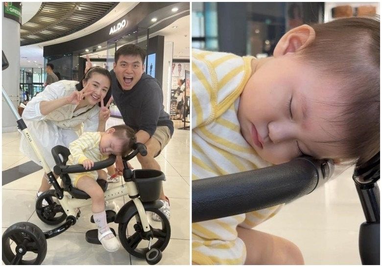 Vừa qua, Salim và chồng thiếu gia cho con đi chơi trung tâm thương mại để mừng Tết thiếu nhi. Nhưng thay vì hào hứng khám phá, bé Pam lại ngủ rất ngon lành ngay trên xe đẩy. Salim còn hài hước viết dòng trạng thái trước sự “buồn” của con gái: "Con gái em hay buồn ngang. Buồn gì mà ngang? Dạ, buồn ngủ".