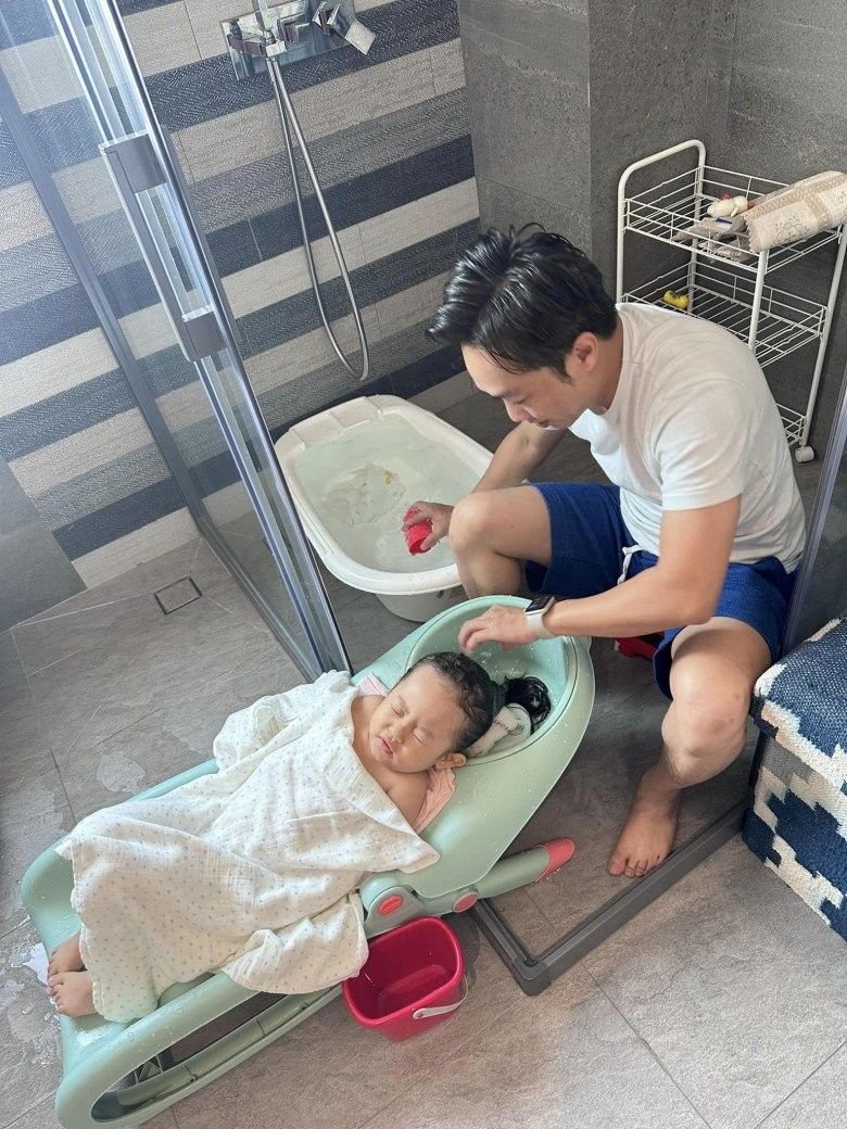 Qua hình ảnh có thể thấy, động tác của nam doanh nhân phố núi rất thuần thục và nhẹ nhàng, tỉ mỉ. Dân tình cũng chăm chăm vào biểu cảm đáng yêu dễ thương của bé Suchin khi được bố chăm sóc. Ban đầu, cô bé tỏ ra hơi sợ nhưng sau đó lại thích thú và nằm im để được bố phục vụ. Ông xã Đàm Thu Trang còn liên tục thơm ái nữ để bày tỏ tình cảm. Khoảnh khắc của 2 bố con Cường Đô La khiến khán giả thích thú.