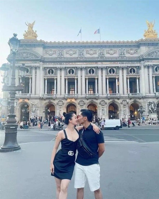 Giữa không gian lãng mạn, cổ kính của nước Pháp, Khánh Thi - Phan Hiển trao nhau nụ hôn tình tứ. Trông cả 2 giống đôi tình nhân trẻ đang trong giai đoạn hẹn hò hơn là vợ chồng lâu năm.