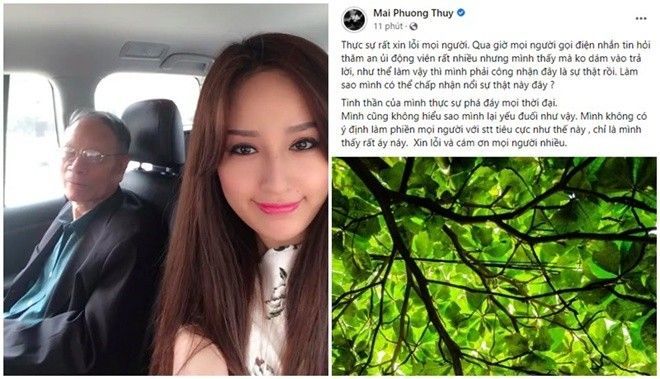 Mai Phương Thúy có chia sẻ buồn bã trên trang cá nhân khiến bạn bè và người hâm mộ không khỏi xót xa. Theo đó, nàng Hậu chia sẻ: "Thực sự rất xin lỗi mọi người. Qua giờ mọi người gọi điện nhắn tin hỏi thăm an ủi động viên rất nhiều nhưng mình thấy mà không dám vào trả lời, như thể làm vậy thì mình phải công nhận đây là sự thật rồi. Làm sao mình có thể chấp nhận nổi sự thật này đây? Tinh thần của mình thực sự phá đáy mọi thời đại.