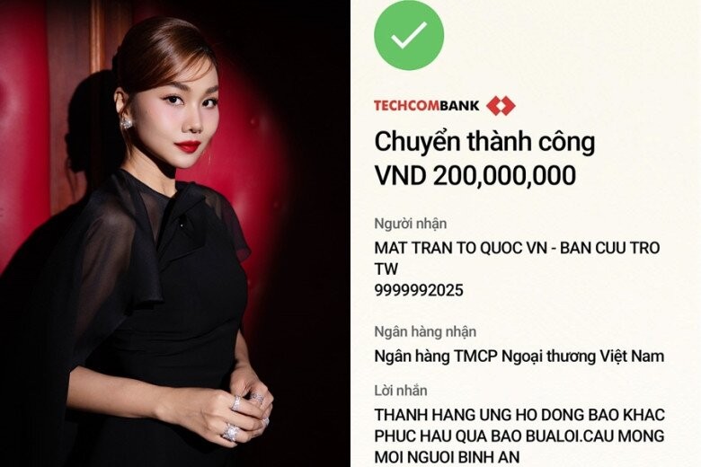 Siêu mẫu Thanh Hằng góp 200 triệu đồng, ủng hộ đồng bào khắc phục hậu quả của bão. Cô viết: “Hằng xin được góp một chút sức nhỏ của mình chung tay cùng mọi người sẻ chia khó khăn, mong bà con sẽ luôn vững vàng, bình an và sớm vượt qua giai đoạn khó khăn này”.