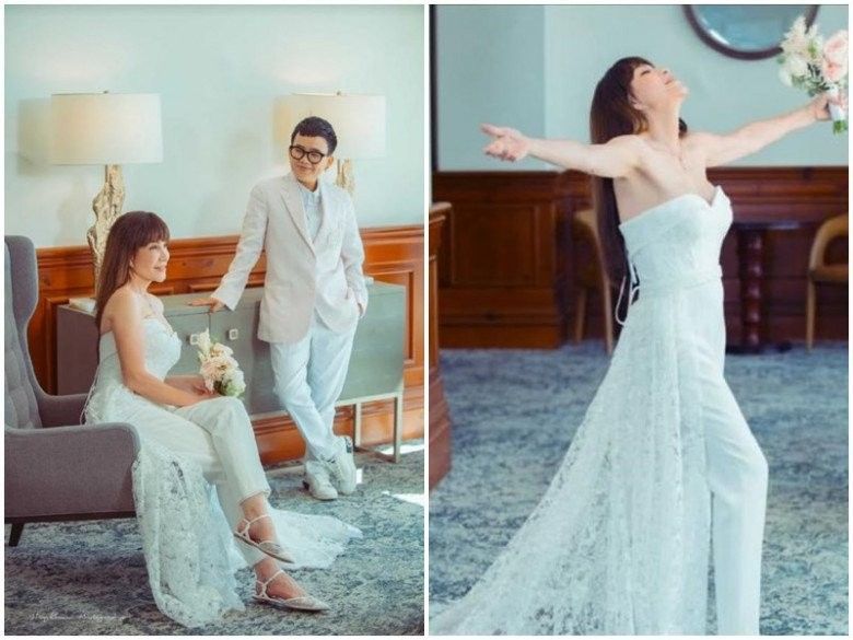 Sau đám cưới "gây bão", Phương Uyên - Thanh Hà tung bộ ảnh cưới lãng mạn, đặc biệt thu hút sự chú ý của khán giả. Trái với tưởng tượng của nhiều người, Thanh Hà không trở thành "công chúa" thướt tha mà diện jumpsuit hở lưng mạnh mẽ, còn nhạc sĩ Phương Uyên lựa chọn cho mình vest trắng đầy thanh lịch.
