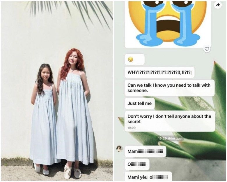 Theo đó, người đẹp đăng tải dòng tin nhắn của con gái gửi cho mình: "Mẹ ơi, con vừa gọi mẹ. Tại sao mẹ buồn? Chúng ta có thể nói chuyện vì con biết mẹ đang cần nói chuyện với một ai đó. Đừng lo, con sẽ không nói với ai về bí mật này. Mami yêu ơi".