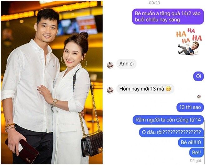 Trên trang cá nhân, chồng Bảo Thanh đã có chia sẻ thú vị về ngày Valentine. Theo đó, anh chia sẻ cuộc trò chuyện giữa mình và vợ đầy hài hước. Cụ thể, để tránh phật ý "nóc nhà", Đức Thắng đã hỏi thẳng vợ muốn tặng quà vào chiều hay sáng? Khi vợ thắc mắc còn quá sớm, anh đáp lại một câu bá đạo: "13 thì sao? Rằm người ta còn cúng từ 14".