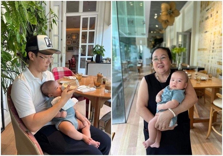 Kể từ ngày quý tử ra đời, Lê Hiếu rất hiếm khi chia sẻ hình ảnh con con trai trên trang cá nhân. Mới đây, nam ca sĩ hé lộ thêm một vài khung ảnh khoe dung mạo của quý tử hiện tại gần 4 tháng tuổi. Trong ảnh, Lê Hiếu hóa thành ông bố bỉm sữa chăm con cực khéo. Anh còn tiết lộ thêm hình ảnh mẹ ruột bay vào thăm cháu. Nam ca sĩ hạnh phúc viết: "Bà vào Sài Gòn chơi với cháu!"