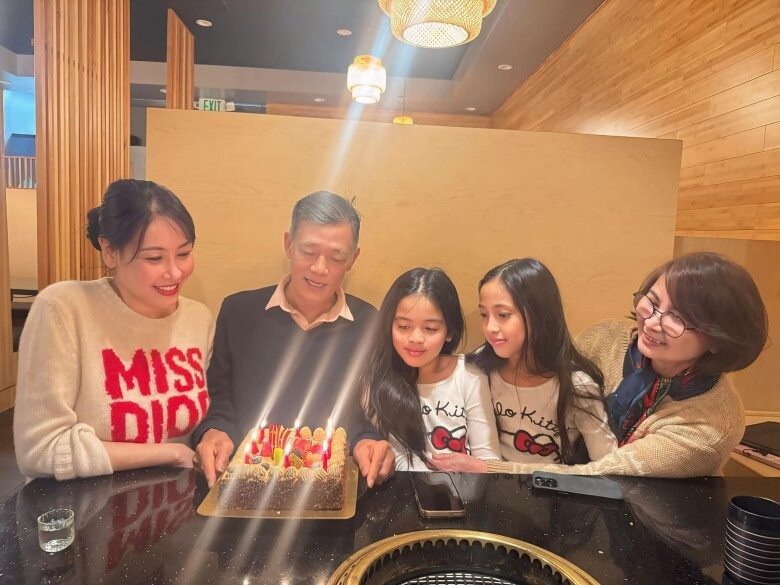 Hà Kiều Anh chụp ảnh thân thiết, chúc mừng sinh nhật bố dượng bên Mỹ.