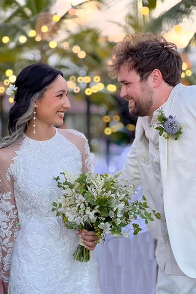 Sau gần 2 tháng tổ chức đám cưới tại Mỹ, con gái lai Tây của Mỹ Linh - Anh Quân là Anna Trương vừa về Việt Nam làm lễ báo hỷ trên bãi biển của một resort ở Hội An. Hôn lễ của cặp đôi diễn ra đơn giản, riêng tư với sự tham gia của gia đình, bạn bè thân thiết. Hiện không có nhiều hình ảnh, thông tin của buổi lễ được hé lộ.