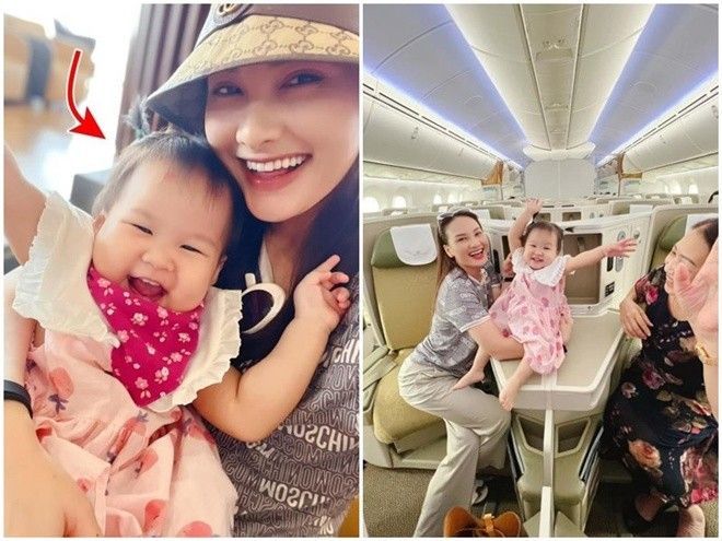 Lần đầu được đi máy bay, con gái Bảo Thanh gây "sốt" vì nhiều biểu cảm dễ thương. Trong loạt ảnh nữ diễn viên đăng tải lên trang cá nhân, bé Nanu không những không sợ mà còn vô cùng khoái chí, liên tục cười tít mắt.