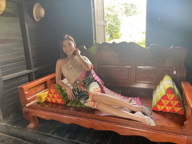 Trên trang cá nhân, Thúy Diễm khoe diện mạo mới với tóc ngắn cá tính. Cô vừa có chuyến du lịch Thái Lan, chụp nhiều hình ảnh diện trang phục truyền thống của xứ chùa Vàng. Dù đã là "mẹ 1 con" nhưng nữ diễn viên vẫn giữ được vẻ ngoài xinh đẹp và dáng người thanh mảnh, vòng eo thon.