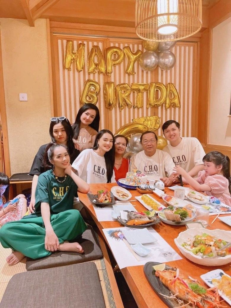 Trên trang cá nhân, bà xã Trường Giang xúc động chia sẻ: "Biết ơn lắm lắm... Lần đầu tiên sinh nhật của ba mà gần như đầy đủ cả nhà, chỉ mong là chị ba mau về Việt Nam để hạnh phúc được trọn vẹn. Tụi con chỉ mong ba và má luôn luôn nhiều sức khoẻ thì không gì tuyệt vời hơn. Lần đầu tiên đưa 2 anh chị đi ăn đồ Nhật, sợ ăn không được mà lại ăn không tưởng".