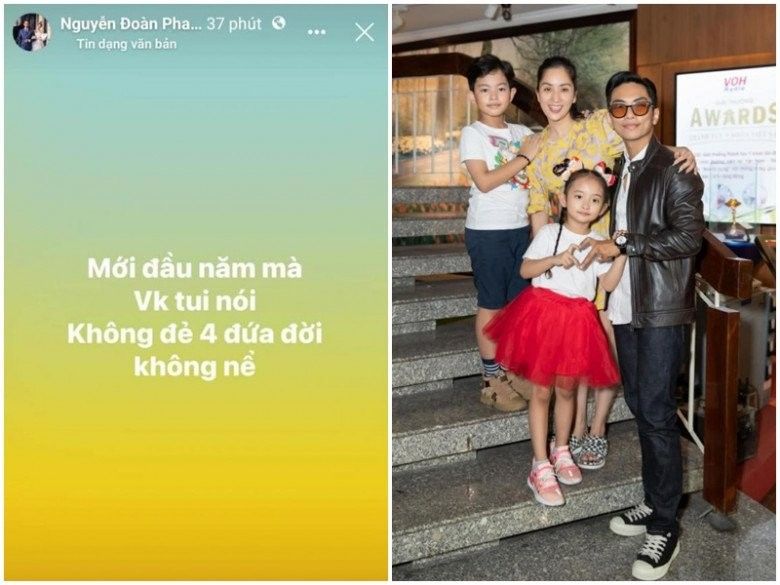Mới đây trên trang cá nhân, chồng trẻ Khánh Thi tiết lộ một điều khiến khán giả vui lây. Theo đó, Phan Hiển cho biết, vợ mình đang muốn tăng thêm thành viên cho gia đình. Cụ thể, nam kiện tướng chia sẻ: "Mới đầy năm mà vợ tui nói không đẻ 4 đứa đời không nể".
