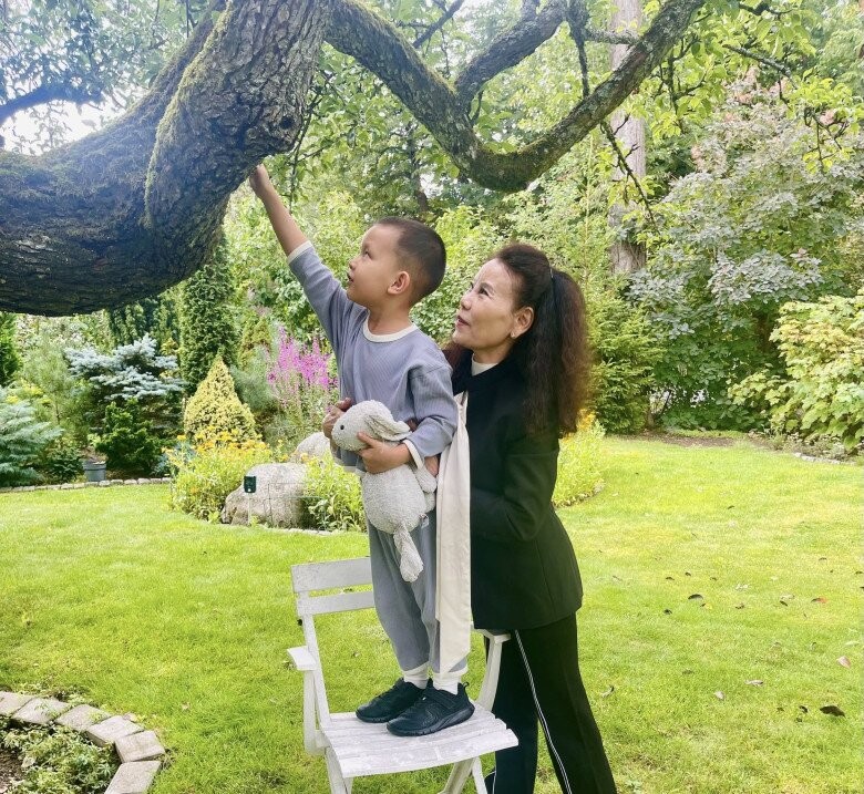 Bà Ngọc Hương thường giúp đỡ con gái trông nom các cháu.