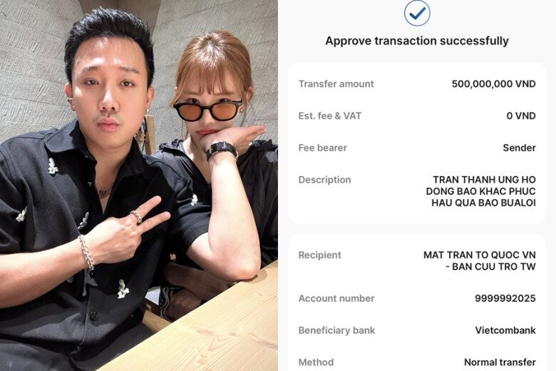 Trên trang cá nhân, vợ chồng Trấn Thành - Hari Won thông báo chuyển 500 triệu đồng đến Ban Cứu trợ Trung ương - Ủy ban Trung ương Mặt trận Tổ quốc Việt Nam. Nam MC chia sẻ: "Xin được góp một chút sức mình trong công cuộc giúp đỡ bà con miền Trung vượt qua bão lũ. Mong mọi người hãy cùng chung tay. Chúng ta mỗi người một ít thôi nhưng mọi người cùng làm, bà con sẽ nhận được nhiều".