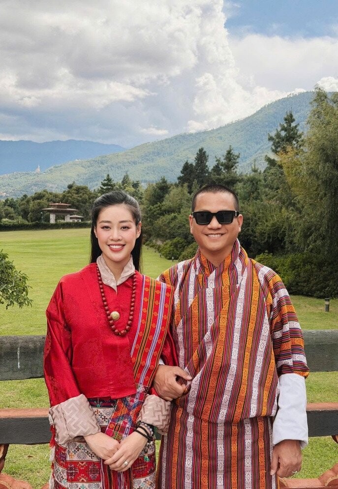 Trên trang cá nhân, hoa hậu Khánh Vân đăng tải hình ảnh cùng chồng vi vu tại Bhutan. Cặp đôi diện trang phục truyền thống của nơi đây, rạng rỡ giữa khung cảnh thiên nhiên hùng vĩ.