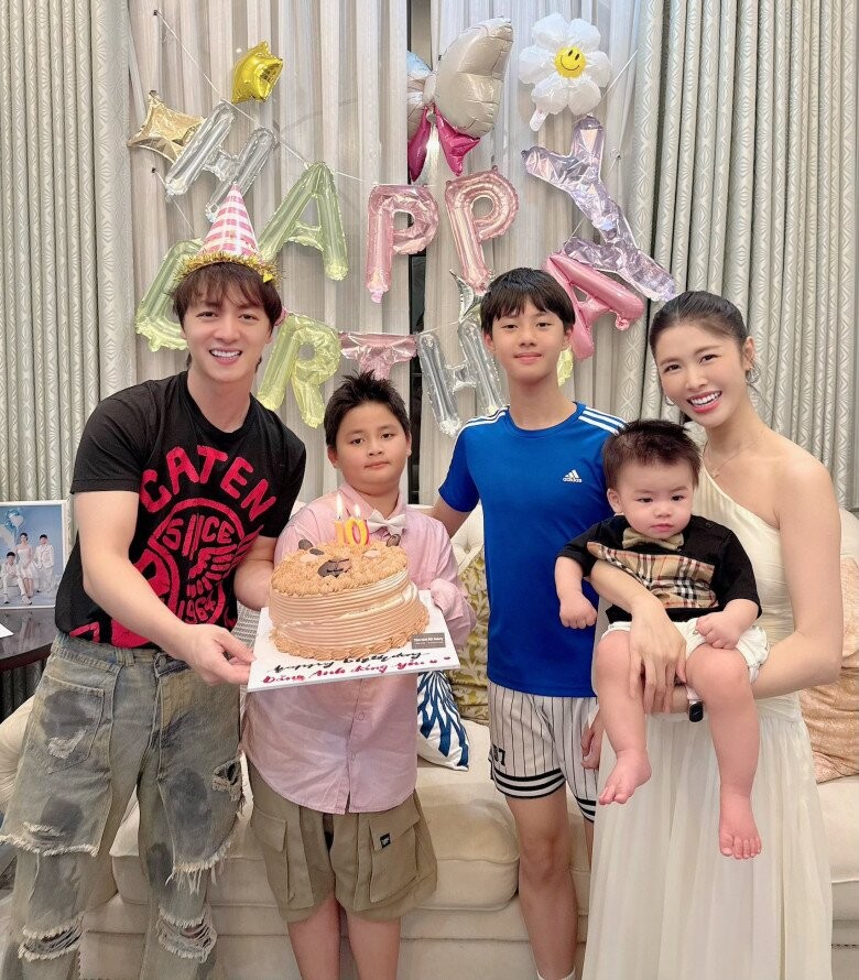 Gia đình Đăng Khôi quây quần mừng con thứ 2 Đăng Anh tròn 10 tuổi. Trên trang cá nhân, vợ nam ca sĩ gửi lời chúc đến quý tử: “Happy Birthday Đăng Anh chó con lên 10 tuổi. Thoáng một cái thật nhanh chú Dê con của mẹ năm nay đã tròn 10 tuổi rồi. 10 tuổi là cột mốc thật đẹp của con. Năm nay có gia đình mình có thêm em Kai, con chính thức 'mất chức em út' trong nhà rồi, nhưng lại nhận thêm một vai trò mới, quan trọng hơn là làm anh ba của em Kai. Cảm ơn thiên thần bé nhỏ luôn là niềm vui của cả nhà ta. Dù lên 10 tuổi rồi nhưng con vẫn hồn nhiên lắm nhưng đã biết yêu thương và trách nhiệm, ra dáng người lớn hơn rồi. Hy vọng tuổi mới sẽ mang đến cho con thật nhiều niềm vui, thật nhiều tiếng cười nhé Chúc mừng sinh nhật con trai yêu của bố mẹ. Cả nhà yêu con rất nhiều”.