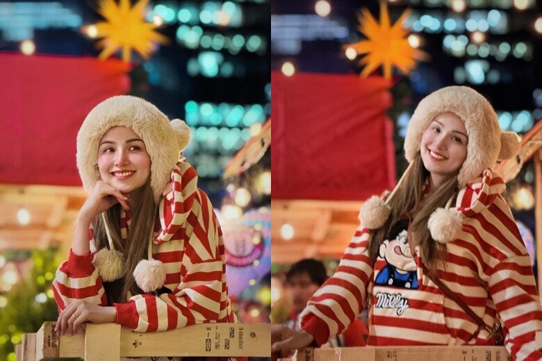 Hoa hậu Diễm Hương khoe loạt ảnh giữa không khí Giáng sinh sớm do chồng làm phó nháy. Kèm theo hình ảnh, nàng hậu tiết lộ thêm về tính cách của em bé trong bụng: “Bé Ong của mẹ ơi, lúc mẹ chụp những hình này do ba con làm phó nháy, là mẹ cũng nặng nề lắm rồi, nhưng sao mà vẫn không ai biết mẹ có em Ong quậy trong bụng nhỉ. Ba Mập nói: “Xía! Đâu phải ai muốn thấy là thấy, book hẹn chưa!”. Đấy! Cái nết của con là mẹ biết con giống ai rồi. Thì cho nên con nghe lời ba con lắm, và ba con cũng bị con hành lắm. Toàn phải dậy lúc 4 giờ sáng để bật nhạc và tâm sự với con để con đi ngủ và không nghịch làm mẹ đau nữa. Ai đời chưa xuất hiện “official” mà ta nói nói cái gì cũng hiểu. Ba năn nỉ, vỗ mông là bỏ liền cái chân ra khỏi xương sườn, nằm ngay ngắn đàng hoàng. Tối ngủ mà ông bô phải vừa ngáy ngủ vừa vỗ vỗ cái mông em để em không quậy nữa. Mẹ có thể cực khi này và mấy tháng qua, nhưng tương lai là mẹ biết ai cực rồi đó con trai à”.