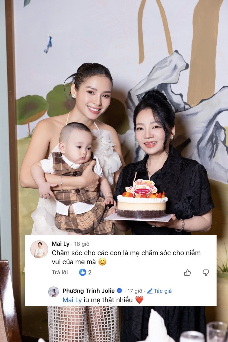 Không chỉ dừng lại ở loạt ảnh ngọt ngào, ngay dưới bài đăng, mẹ chồng Phương Trinh Jolie cũng để lại bình luận khiến nhiều người xúc động: “Chăm sóc cho các con là mẹ chăm sóc cho niềm vui của mẹ mà.” Lời nhắn nhẹ nhàng nhưng đầy ấm áp này càng cho thấy sự yêu thương vô điều kiện mà bà dành cho con cháu.