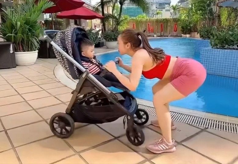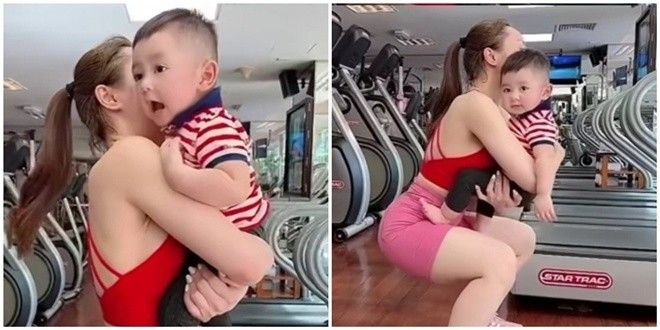 Lý Thùy Chang khoe khoảnh khắc Gia Khang hào hứng tập gym cùng mẹ cực đáng yêu.