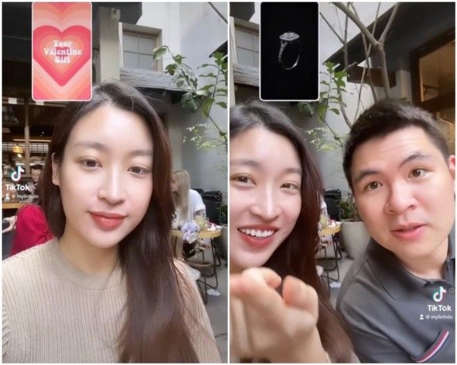 Sau khi về chung một nhà, Đỗ Mỹ Linh thường xuyên đăng tải những khoảnh khắc thường nhật của mình và chồng lên mạng xã hội. Mới đây, nhân dịp Valentine, Đỗ Mỹ Linh đã "đu trend" trên TikTok dự đoán quà mà mình được nhận và món quà mà nàng hậu quay ngẫu nhiên là chiếc nhẫn kim cương.