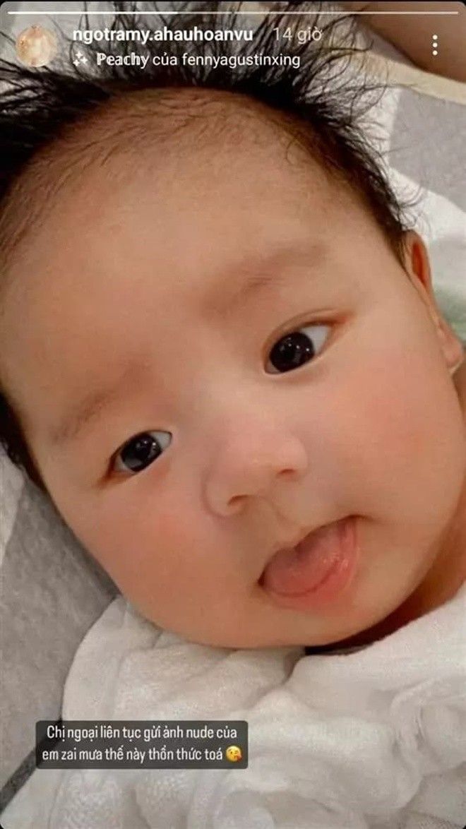Sau hơn 2 tháng hạ sinh quý tử, Á hậu Ngô Trà My mới đây công khai ảnh cận cảnh dung mạo nhóc tỳ. Trong ảnh, con trai của nàng á hậu khiến ai nấy thích thú với ngoại hình cực tuấn tú. Cậu bé với vẻ ngoài bầu bĩnh, đáng yêu sở hữu đôi mắt to đen láy và khuôn miệng xinh xắn cùng làn da trắng nõn. Quý tử nhà Ngô Trà My được cho là dung hòa đường nét của cả bố và mẹ.
