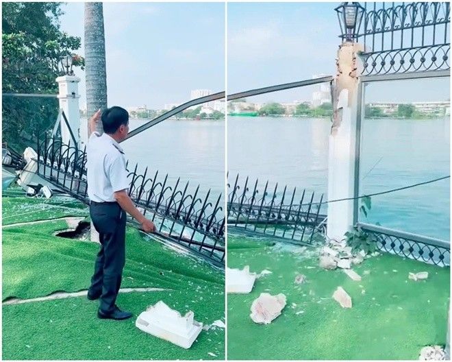 Vũ Khắc Tiệp vừa đăng tải clip thể hiện sự hốt hoảng khi phần cổng kính ở mặt tiền biệt thự hướng ra sông đã bị sập. Ngoài ra, phần sân nền cũng bị nứt nhiều chỗ, ảnh hưởng lớn đến tổng thể phần view "bạc tỷ". Được biết, cánh cổng bị một chiếc tàu chở hàng tông vào, qua đoạn clip Vũ Khắc Tiệp đăng tải thì chỉ còn lại đống đổ nát. Nhìn hiện trạng phần cổng biệt thự, dân tình dự đoán phải mất một số tiền lớn để khắc phục sự cố.