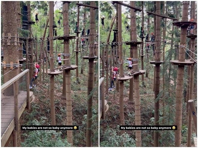 Luôn giữ bí mật về các con nên mỗi lần đăng tải hình ảnh của các thiên thần nhà mình, Tăng Thanh Hà đều khiến dân mạng tò mò. Mới đây trên trang Instagram, nữ diễn viên chia sẻ một khoảnh khắc cực bạo dạn của của 2 nhóc tỳ hào môn trong chuyến đi chơi của gia đình. Theo đó, Tăng Thanh Hà đăng tải đoạn clip 2 con đang chơi trò mạo hiểm rất hăng say. Đoạn clip ngắn cũng đủ thấy sự hứng thú của Richard và Chloe khi được chơi trò chơi mình yêu thích.