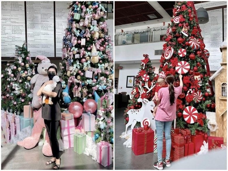 Bảo Thy hoài niệm về con trai của 1 năm trước, mới 1 tháng tuổi vẫn nằm trong vòng tay mẹ ngoan ngoãn. Năm nay, quý tử nhà cô đã nghịch ngợm hơn và đã biết bứt cây thông noel tại bệnh viện. Bảo Thy chia sẻ: “Năm trước ngày này Em tròn tháng mami đưa em đi chích ngừa lần đầu tiên và em nằm ngoan áp vào lòng mẹ. Năm nay thì em... bứt trái châu của bệnh viện”.