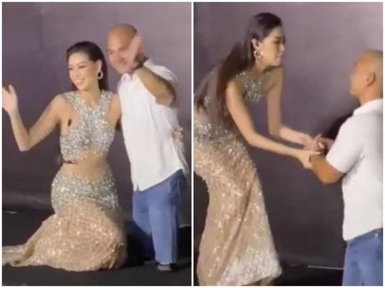 Theo đó, khi vừa thấy người anh là vận động viên bơi lội khuyết tật đến chúc mừng mình, Khánh Vân đã chào hỏi và quỳ gối để chụp ảnh với đối phương. Cô liên tục nắm tay và ôm bạn mình với thái độ trìu mến nhất. Hành động này của nàng hậu thật sự làm người hâm mộ ấm lòng.