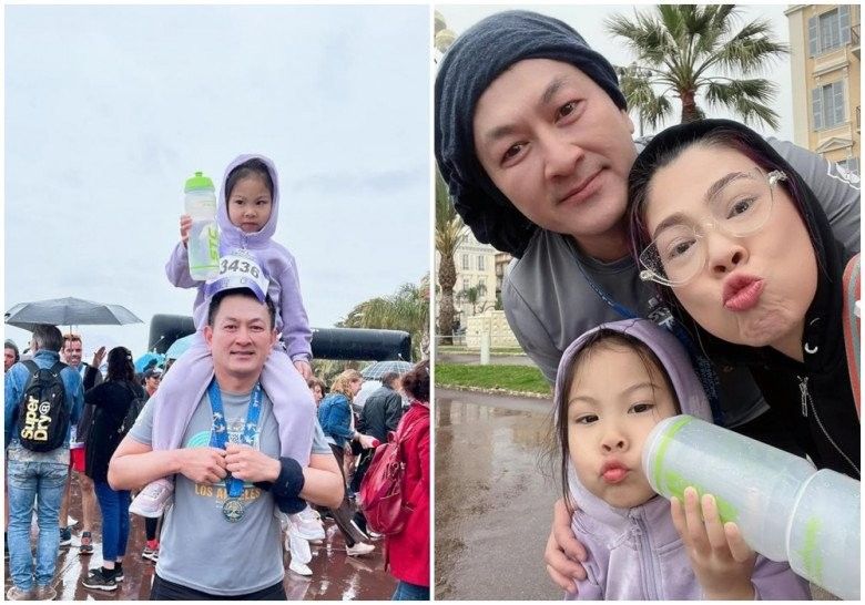 Kèm theo loạt ảnh, nữ ca sĩ cho hay: "Nice hôm nay mưa to quá! Nhưng vẫn không làm khó được Papa của Talia nha! Lại thêm một metal (huy chương) nữa đem về làm kỷ niệm cự ly 21km. Dành cả thanh xuân để chạy bộ là có thật. Và Mama cũng bị hỏi là sao không lo chạy show hát mà cứ chạy theo Papa hoài. Nhưng mà những khoảnh khắc này là vô giá nên cứ vui đi vì cuộc đời cho phép".