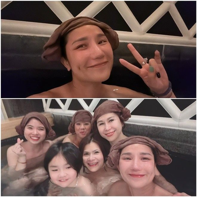 Kèm theo hình ảnh, nữ nghệ sĩ chia sẻ về trải nghiệm tắm Onsen tại Nhật: "Qua Nhật mà không tắm Onsen là coi như uổng phí cả cuộc đời, có điều là nam riêng nữ riêng nha ka ka. Nhưng nói chuyện với nhau nghe hết á ha ha. Nhóm chị em bạn dì tụi em vui ghê, tình thương mến thương".