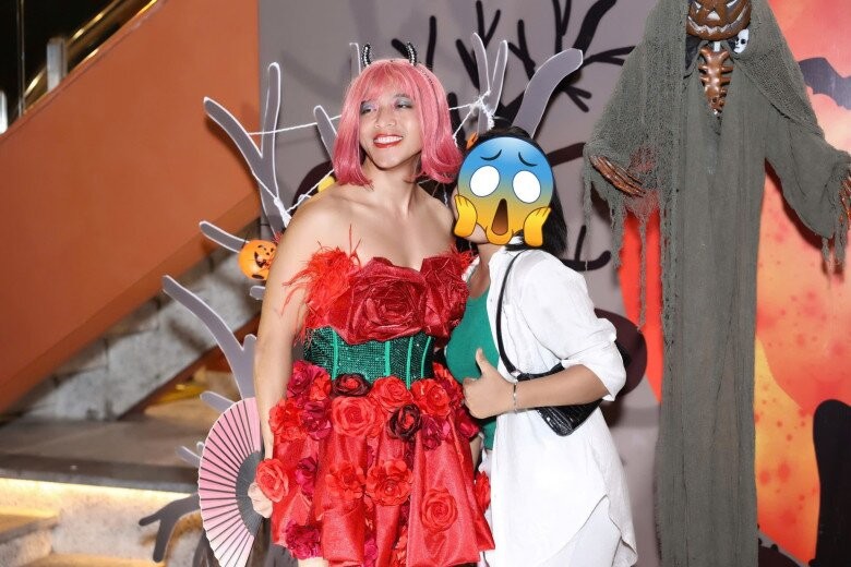Tương tự, gia đình danh hài Việt Hương cũng nhận được nhiều sự quan tâm khi tham gia lễ hội Halloween. Nữ diễn viên khoe khoảnh khắc cùng con gái - Elyza Phương Vy "biến hình". Nhìn trong ảnh, ái nữ danh hài được nhận xét như "bản sao" của mẹ.
