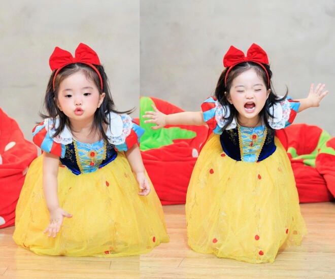 Con gái Khánh Thi hóa trang thành công chúa Bạch Tuyết.