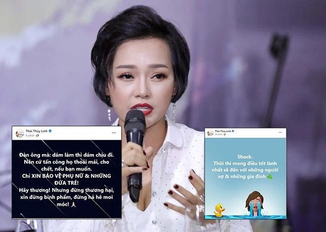 Trên trang cá nhân, ca sĩ Thái Thùy Linh liên tục có nhiều bài viết liên quan: “Shock. Thôi thì mong điều tốt lành nhất đến với những người vợ và những gia đình”, “Đàn ông mà dám làm thì dám chịu đi. Nên cứ tấn công họ thoải mái, cho chết nếu bạn muốn. Chỉ xin bảo vệ phụ nữ và những đứa trẻ. Hãy thương! Nhưng đừng thương hại, xin đừng bình phẩm, đừng hả hê moi móc!”.