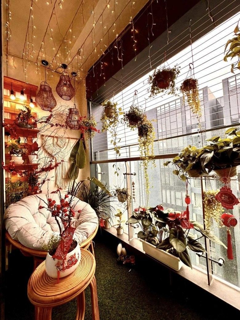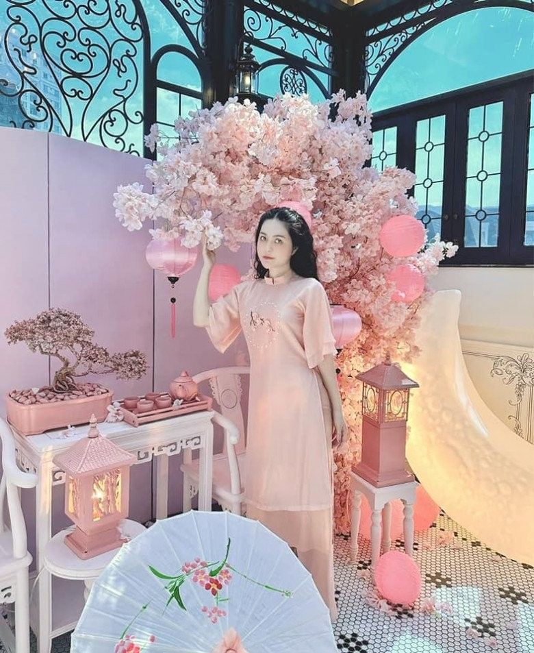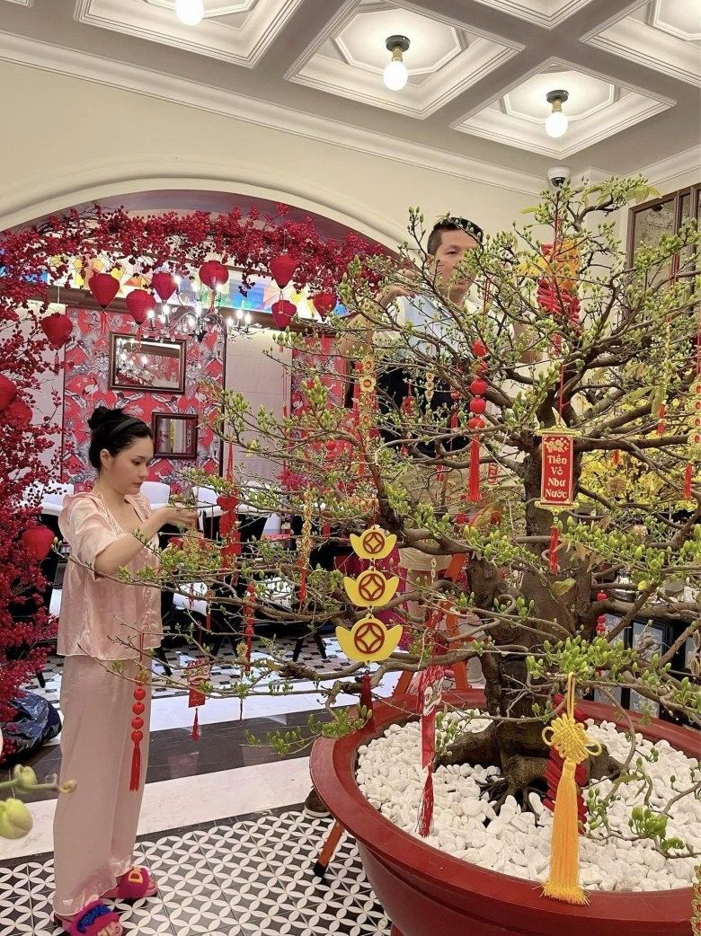 Chưa hết, cô còn mạnh tay đầu tư những chậu hoa mai, cành đào huyền “cỡ khủng”, nặng 4 người khiêng. Ở góc nhà kính cạnh phòng ngủ của hai vợ chồng, Đoàn Di Băng còn tạo một góc “sống ảo” màu hồng rực rỡ khiến ai cũng phải xuýt xoa.