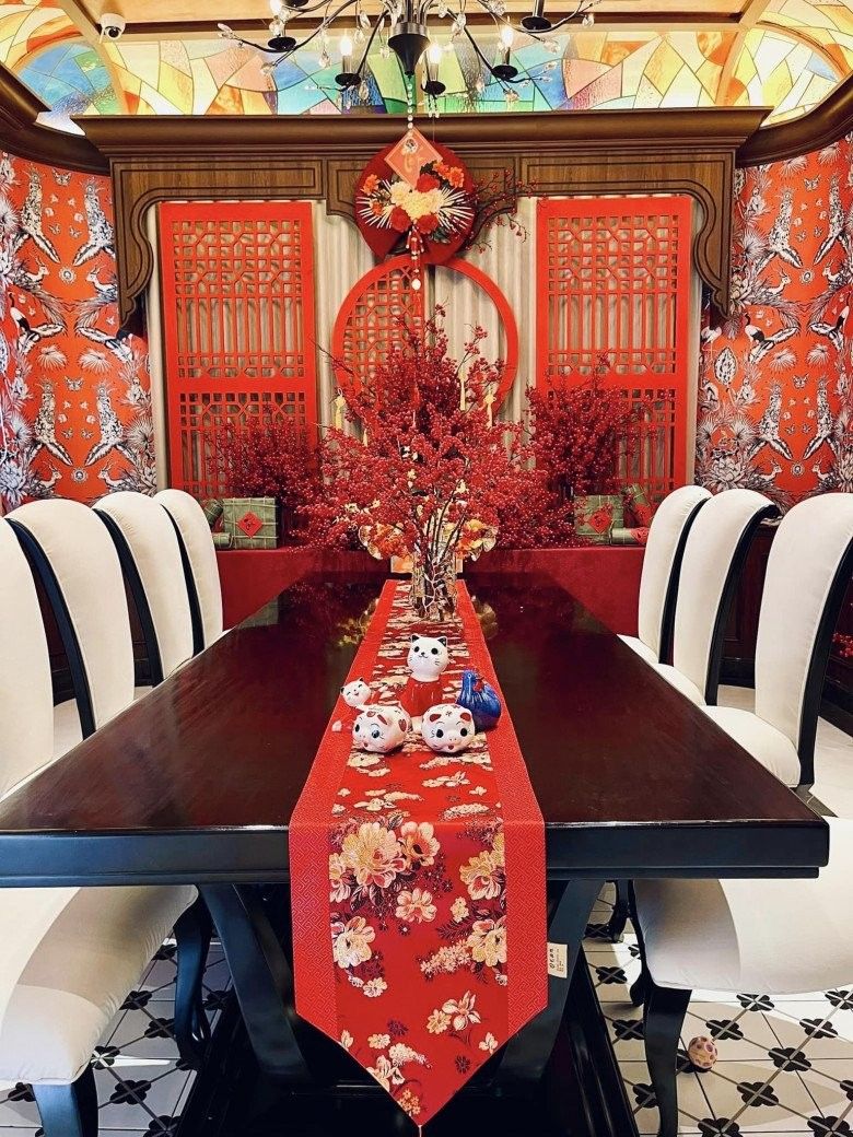 Không gian sống của Phương Ly ngập tràn sắc đỏ khi Tết đến xuân về.