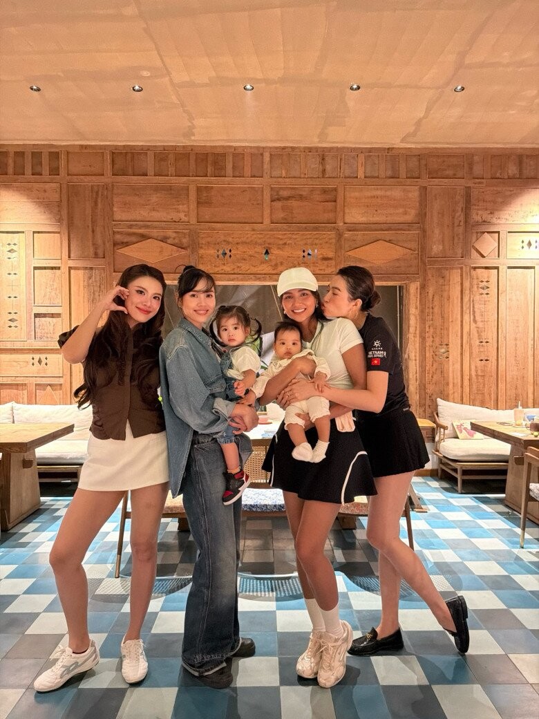 Về Việt Nam những ngày cận năm mới, Hoàng My cũng dành thời gian tụ họp với nhóm bạn thân toàn các người đẹp nổi tiếng. Đặc biệt hơn, bé Ayla còn được hội ngộ với bé Harley - con gái của Hoa hậu H’Hen Niê. Khán giả nhận xét rằng sau này cả 2 nhóc tì có thể sẽ “nối gót” mẹ, trở thành những mỹ nhân nổi tiếng của Vbiz.