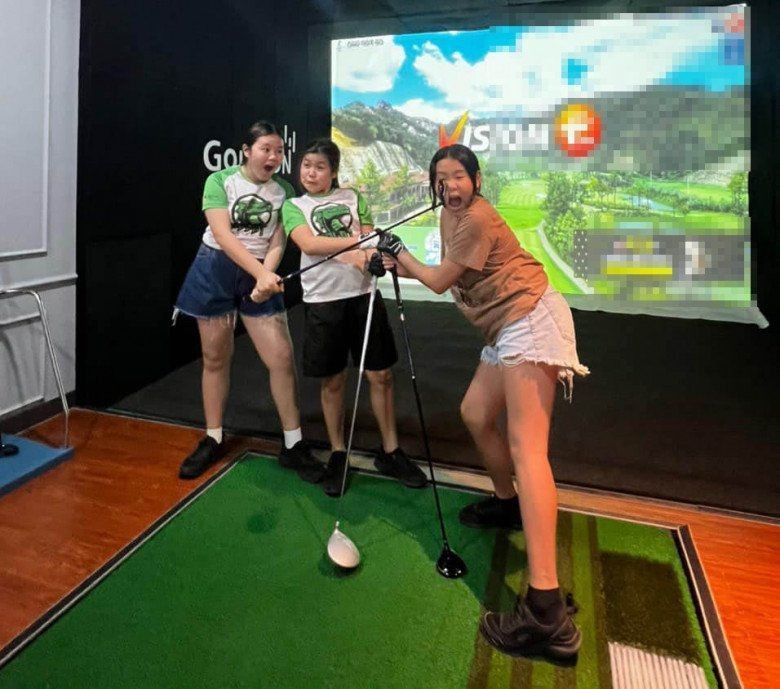 Các cô bé còn được mẹ dẫn ra sân golf để chơi.