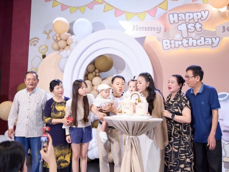 Giữa tháng 5/2025 vừa qua, Phương Oanh - Shark Bình tổ chức tiệc thôi nôi tròn 1 tuổi cho Jimmy - Jenny. Ngày vui có sự tham gia của bố mẹ 2 nhà nội ngoại và Jin - May (2 con riêng của Shark Bình).