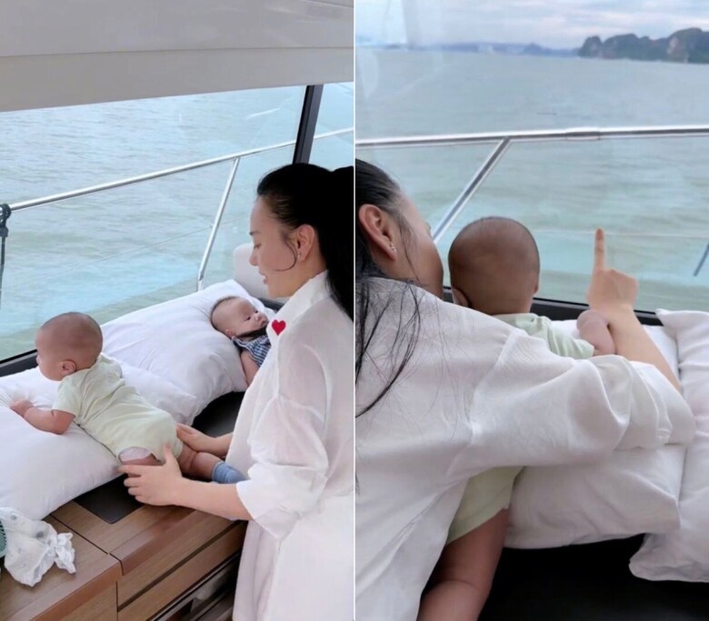 Sinh ra trong gia đình có điều kiện, cặp song sinh nhà Phương Oanh được đầu tư những điều tốt nhất, có cuộc sống sung túc, chuẩn "rich kid" ngay từ khi mới chào đời. Không chỉ được đưa đón bằng xe sang, 2 nhóc tì còn được bố mẹ cho trải nghiệm ngồi du thuyền, đi máy bay hạng thương gia khi chưa tròn 1 tuổi.