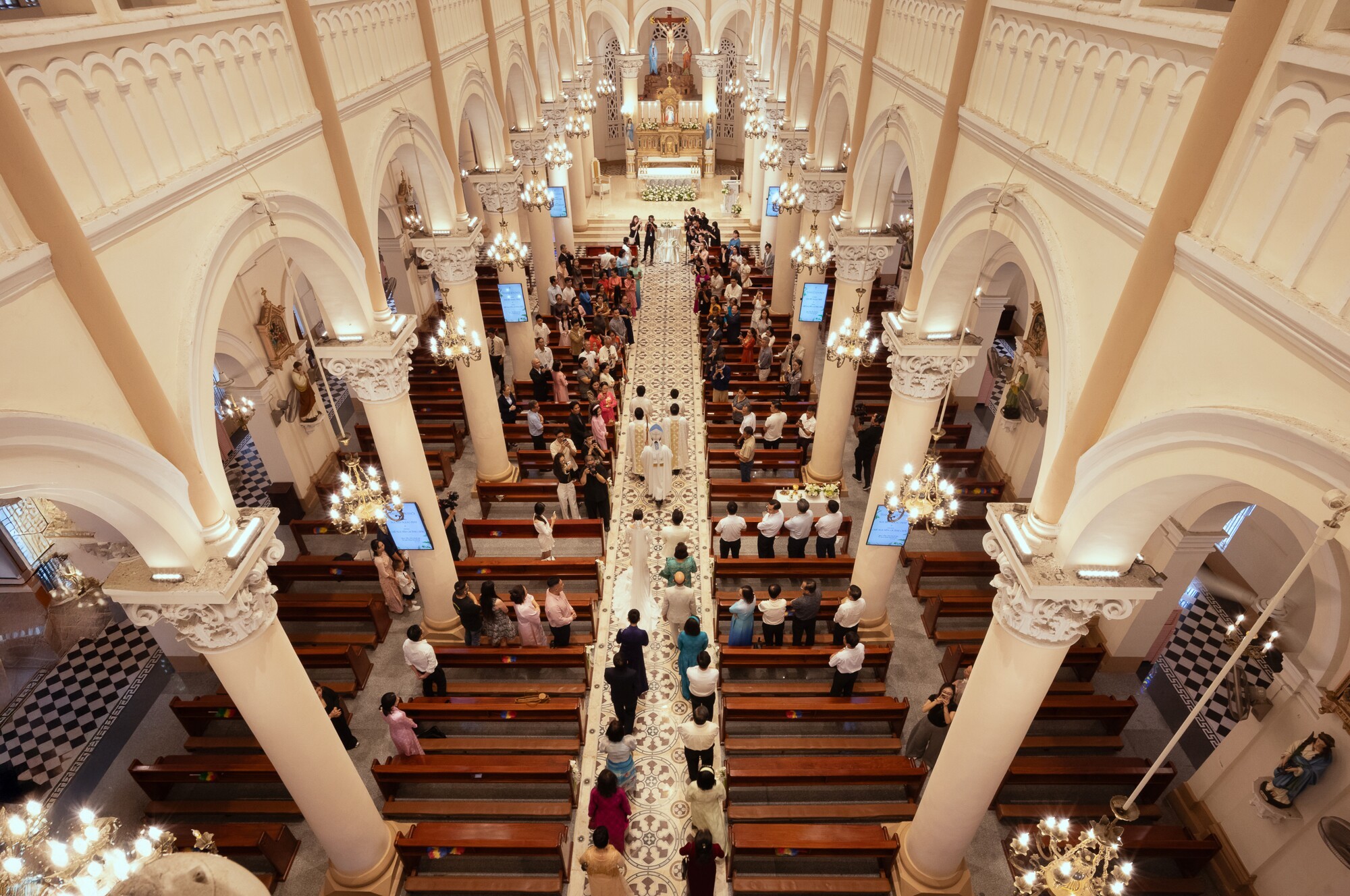 Khoảnh khắc cô dâu - chú rể bước vào lễ đường.