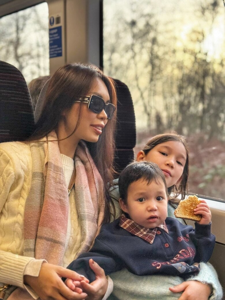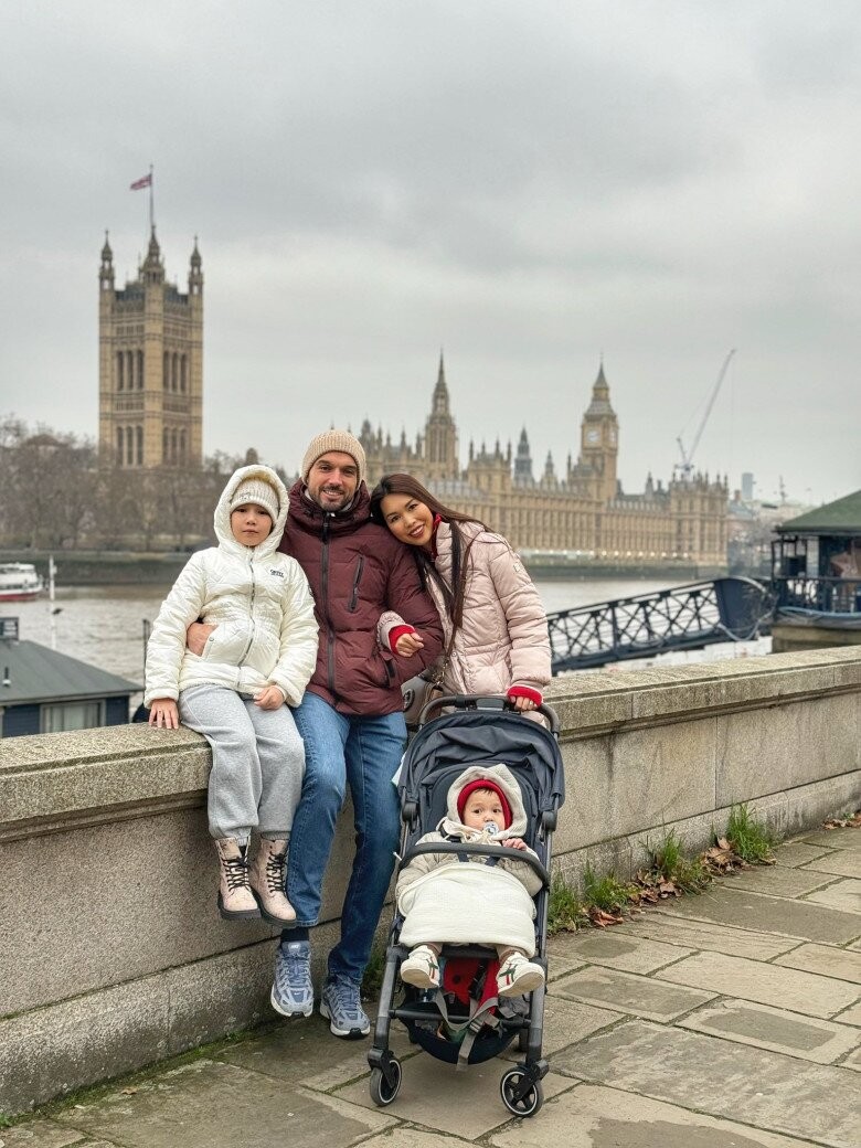 Mới đây, Hà Anh đã chia sẻ loạt hình ảnh về thăm quê của ông xã ở Anh. Vợ chồng nữ siêu mẫu đã đưa 2 con đi vi vu nhiều nơi vào dịp lễ Giáng sinh và năm mới. Hà Anh cho biết giữa mùa đông lạnh giá, ông xã phải chịu trách nhiệm khuân vác 6 vali hành lý to đùng. Còn cô chăm sóc con trai Luca, cảm thấy may mắn vì có ái nữ Myla hiểu chuyện giúp đỡ.
