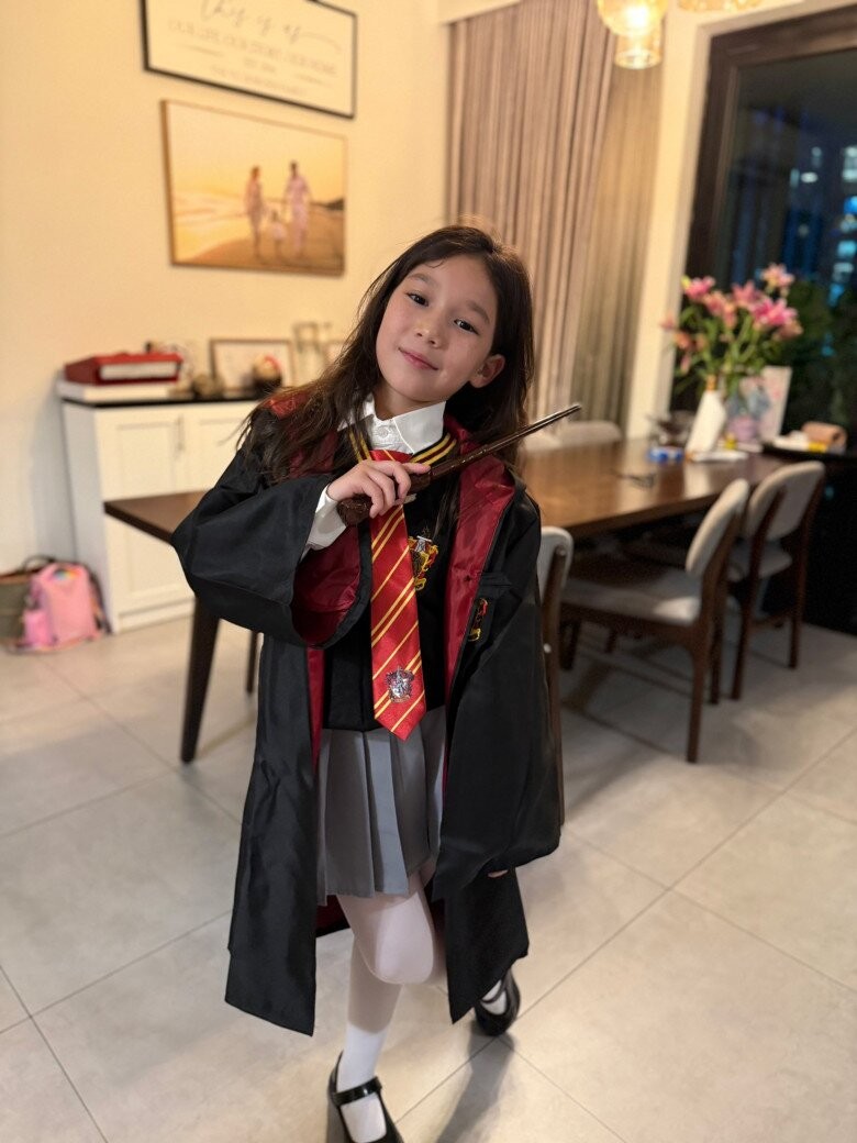 Siêu mẫu Hà Anh chia sẻ: “Myla bắt đầu đọc cuốn sách thứ 5 trong bộ truyện Harry Potter. Mẹ nể em quá! Lâu lắm rồi mẹ chưa mần hết cuốn sách nào dày như thế này. Khi nào em đọc được bằng tiếng Việt mấy cuốn dày như thế này thì mẹ còn phục sát đất nữa”.