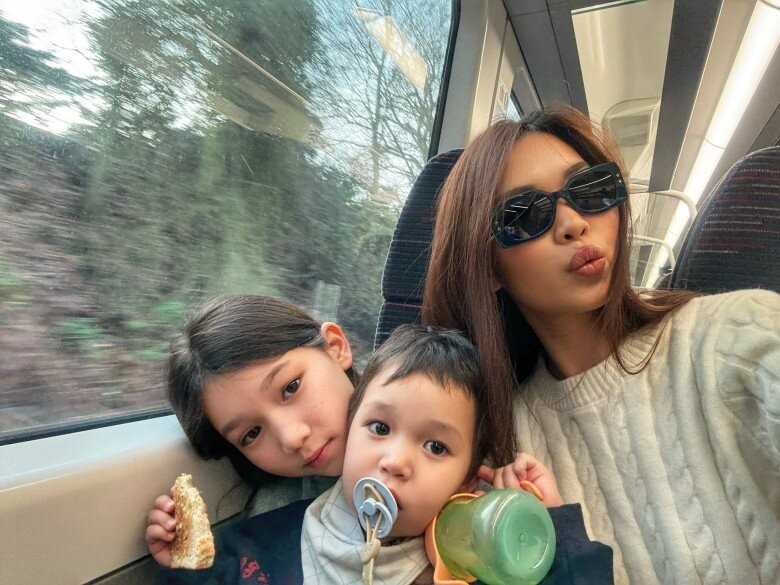 Gia đình Hà Anh đưa các con về Anh thăm người thân bên nội.