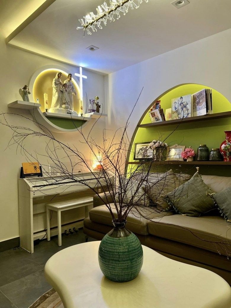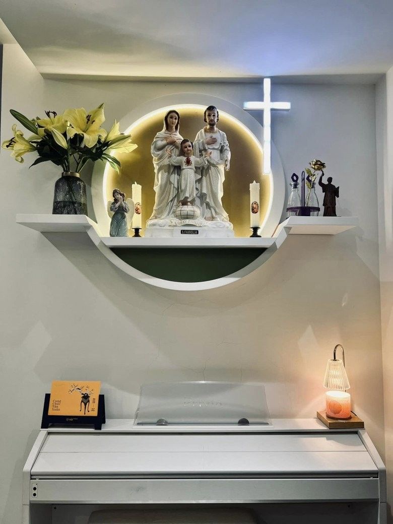 Vì theo đạo Thiên Chúa nên trong nhà Ốc Thanh Vân không thể thiếu bàn thờ Chúa.