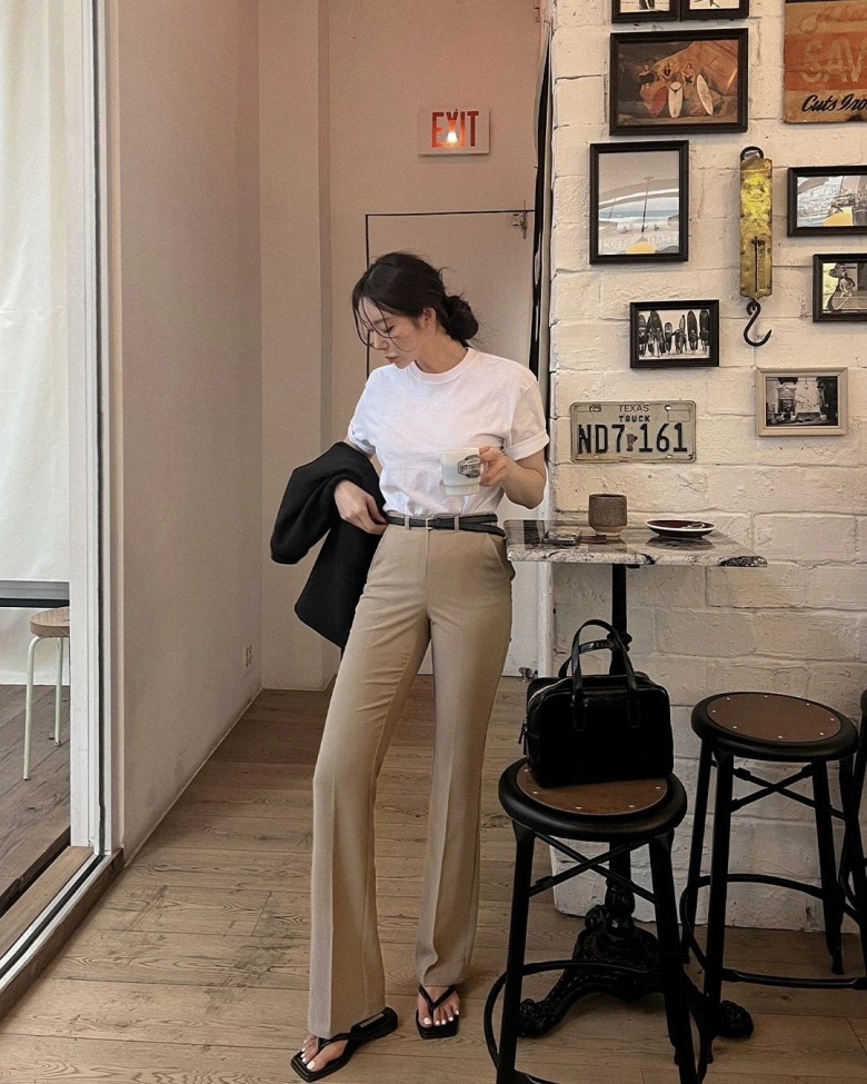 Ngày nay, quần tây có thể kết hợp cùng áo phông để tạo nên một tổng thể vừa tiện dụng, vừa thanh lịch, thậm chí vẫn phù hợp trong môi trường công sở. Dù là quần ống đứng chỉn chu, quần ống rộng thoải mái hay quần ống loe tôn dáng, áo phông luôn là lựa chọn lý tưởng. Không chỉ dừng lại ở những cách phối cơ bản, bạn hoàn toàn có thể thử nghiệm nhiều phong cách sáng tạo hơn để làm mới diện mạo.