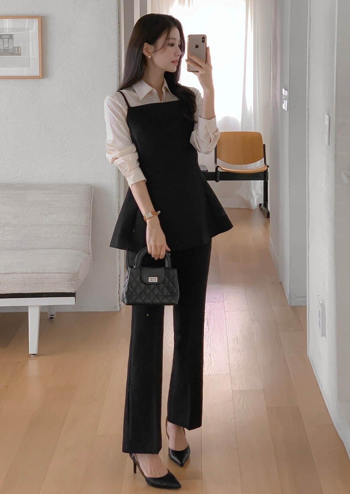 Quần ống loe kết hợp áo sơ mi trơn màu hoặc họa tiết cổ điển sẽ tạo nên tổng thể vừa thanh lịch, vừa mang hơi hướng thời trang hiện đại. Set đồ này không chỉ phù hợp đi làm mà còn rất lý tưởng cho những buổi hẹn hò, gặp gỡ bạn bè. Chỉ cần kết hợp cùng giày cao gót hoặc giày mũi nhọn, outfit sẽ càng thêm cuốn hút.