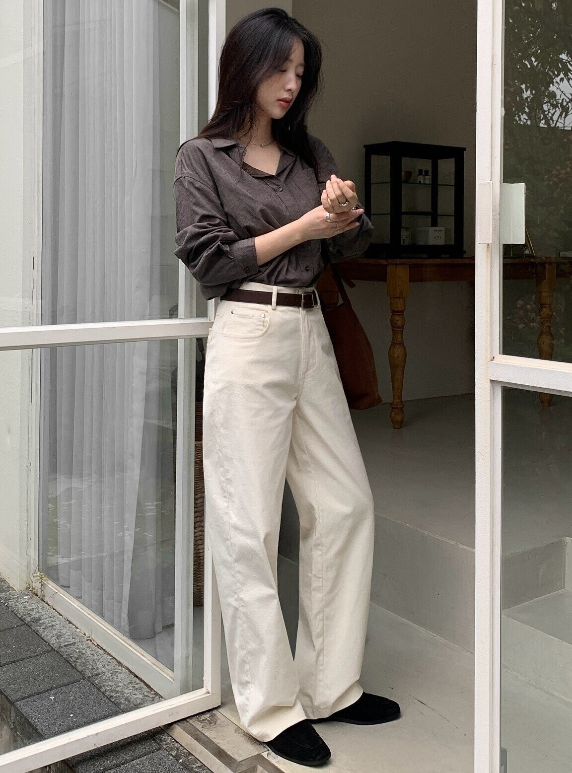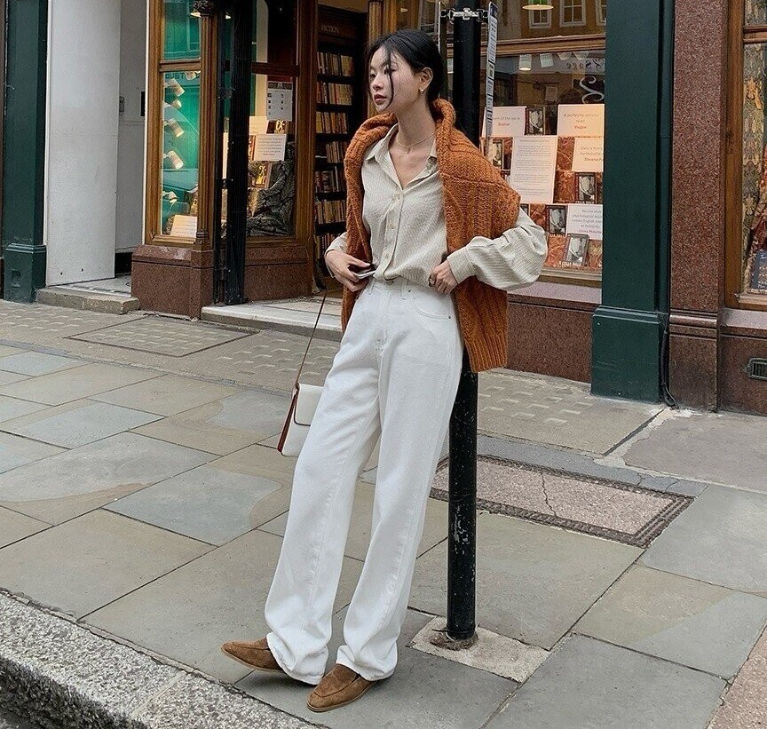 Quần trắng mang lại cảm giác nhẹ nhàng, tươi sáng và thường được xem là "vũ khí hack tuổi" khi phối cùng áo sơ mi. Dù nhiều người e ngại quần trắng khó mặc, nhưng nếu chọn đúng phom dáng như ống đứng hoặc ống suông, item này lại giúp tổng thể trông thanh thoát và sang hơn hẳn.